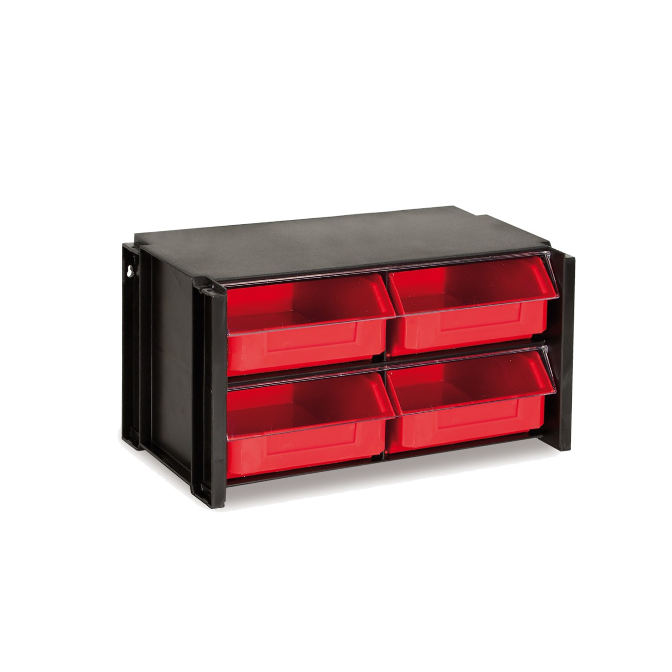 Los módulos apilables con gavetas Tayg son apilables entre sí y además vienen preparados para colgar a la pared.